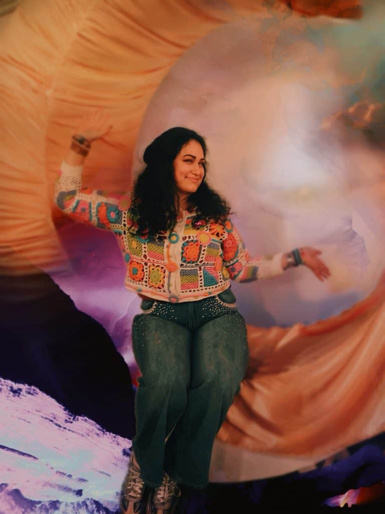 Sam St. John ( she/her) is an Indigenous multimedia artist from Hastings, Minnesota. Sam is a painter, poet, live painter, art facilitator, performance artist, and singer. Sam has an Associate degree in Fine Art from Inver Hills Community College. Sam is a member of Art to Change the World, a social justice art nonprofit. Sam has a studio and gallery in the Northrup King Building in Studio 404. Sam is passionate about art transforming lives. Painting has been a huge part of her healing journey and recovery. Sam’s art is grounded in the essence of storytelling, resilience, authenticity, and vulnerability. Rooted in the soul, art evokes emotions, fosters connections, and builds community. Sam believes that creating art, in any form, is a means of self-healing. She paints with expressive, bright colors that narrate her story, recognizing the power embedded in our narratives. Sam uses her art to start conversations about mental health, recovery, identity, queerness, race, healing, and trauma in hopes of inspiring others. Sam worked with the Twins for the CityConnect Project to celebrate the release of the new uniforms. Sam live-painted Adirondack chairs to be auctioned off to raise money for nonprofits that preserve the Boundary Waters and youth programs. Sam was also part of the Emma Norton/Restorative Waters Project, which had artists paint original artwork for women in transformational housing who are experiencing homelessness, mental illness, substance abuse disorders, chronic illness, and trauma. In 2023, Sam worked with the U of M and Masonic Institute of Research for the Brain as an art facilitator for a case study on how creativity impacts the brain with adolescents and undergraduates.